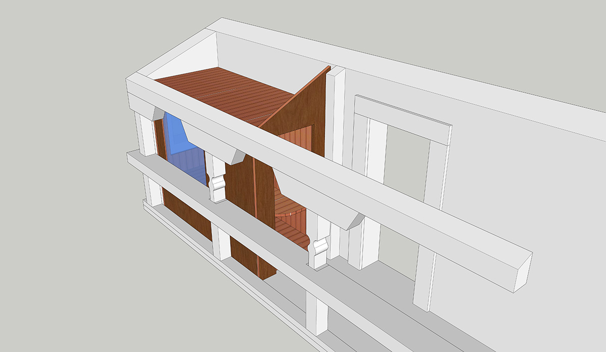 - Die Kabine sollte optisch dem Balkon entsprechen und soll so gut wie möglich mit dem Altholz verschmelzen.