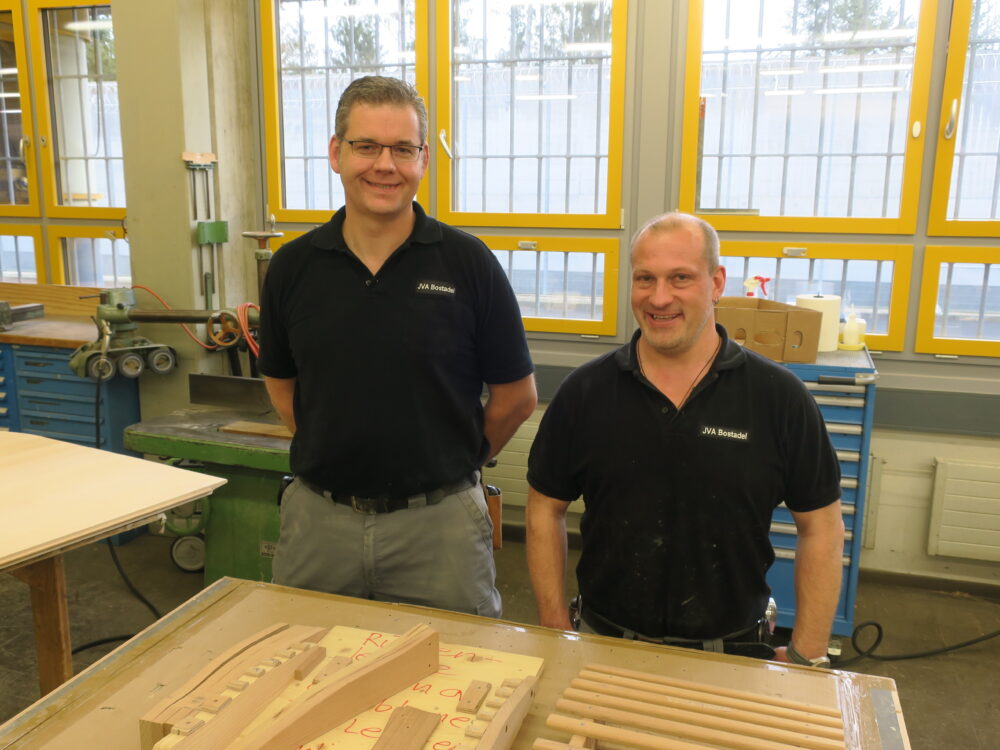 Andi und Markus bei der Arbeit in der Schreinerei in der JVA Bostadel.